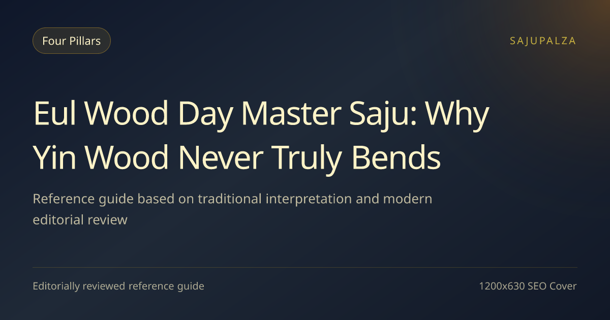 The phrase "soft but never bends" describes eul wood day master saju more accurately than most single-line summaries. Yin Wood adjusts, accommodates, and reads the room — but it does not abandon its direction. The real issue is that this movement is so quiet that people around Eul Wood consistently underestimate where its limits actually are. This guide explains why Eul Wood holds its ground so persistently, and what that means for career, personality, love, and 2026 fortune.