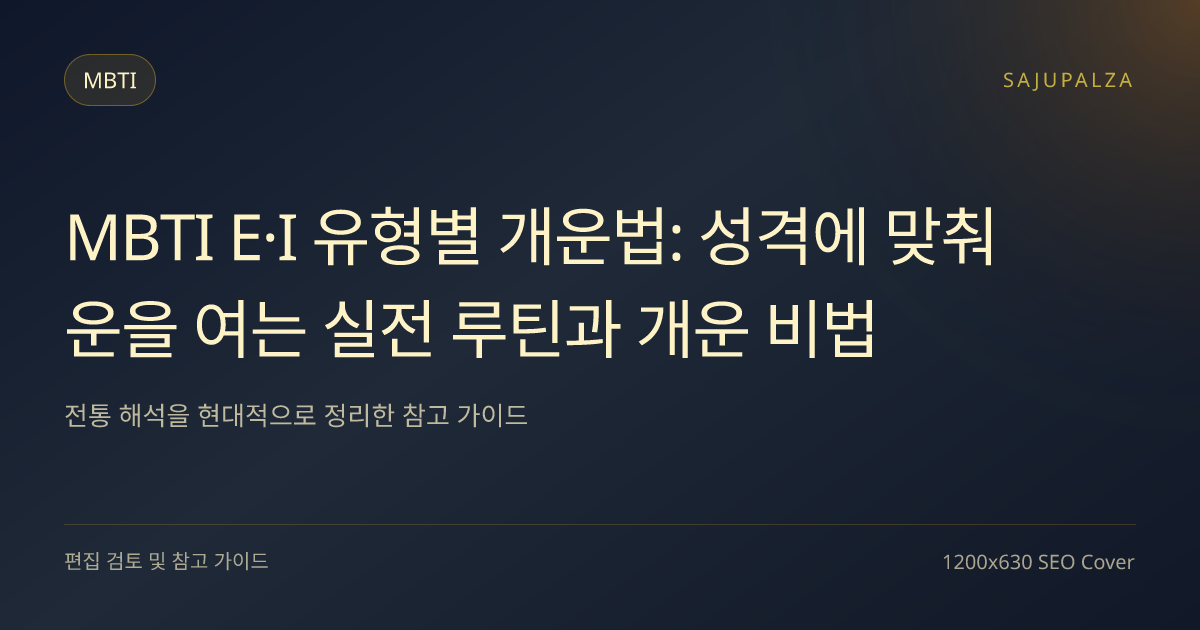 최고의 개운법은 결국 ‘자신을 아는 것’입니다. 내가 I인지 E인지, 내 사주에 어떤 기운이 강한지 이해하고 그에 맞춰 행동할 때 세상의 운은 비로소 당신의 편이 됩니다. 오늘부터 당신만의 작은 행운 루틴을 시작해 보세요.
