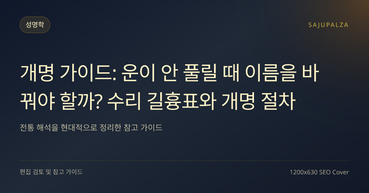 살다 보면 '내 이름이 나를 막고 있는 건 아닐까?'라는 생각이 드는 순간이 있습니다. 하는 일마다 꼬이고, 건강이 예전 같지 않고, 좋은 기회가 왔다 싶으면 놓치고—이런 패턴이 반복될 때 개명(改名)은 한 번쯤 진지하게 고려할 만한 선택입니다. 성명학적으로 잘못 설계된 이름은 사주의 좋은 기운을 억누르고, 불필요한 장애물을 만들어냅니다. 반대로 올바른 이름으로 개명하면 심리적 자신감이 높아지고, 에너지의 흐름이 달라집니다.