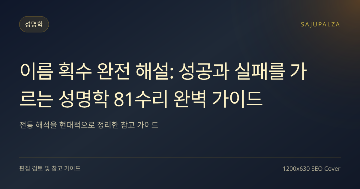이름은 우리 삶에서 가장 많이 불리고 쓰이는 언어적 상징입니다. 동양의 오랜 철학이자 운명학인 성명학(姓名學)에서 이름은 단순한 부호가 아닙니다. 그것은 한 사람의 인생에 보이지 않는 기운을 불어넣고, 운명의 방향을 설정하는 강력한 주파수와 같습니다. 특히 한자 문화권에서 이름의 가치를 판단할 때 가장 중요하게 다루어지는 핵심 원리가 바로 '이름 획수'입니다. 한자는 뜻글자(표의문자)로서 그 글자가 형성된 고유한 원리와 철학을 담고 있으며, 한자를 구성하는 선과 점 하나하나가 모여 특정한 에너지를 형성한다고 봅니다. 이 획수들이 모여 만들어내는 숫자의 조합은 인생의 길흉화복을 예측하는 중요한 지표가 되며, 이를 체계적으로 정리한 것이 바로 수리81수(數理81數) 이론입니다.