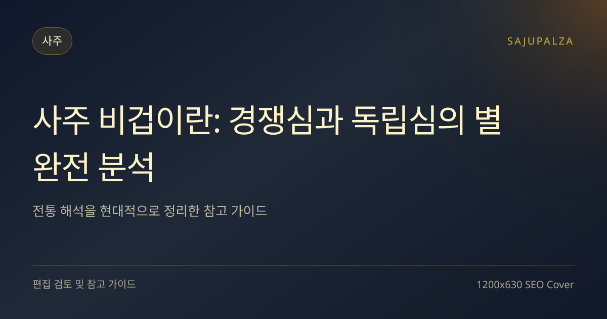사주 비겁은 자존감, 독립심, 경쟁심, 사람 사이의 거리 조절을 읽을 때 핵심이 되는 십성입니다. 비겁 사주 뜻을 제대로 모르고 보면 “왜 나는 남과 비교를 자주 할까?”, “왜 돈 문제에서 사람 때문에 흔들릴까?”, “왜 조직보다 혼자 일할 때 더 편할까?” 같은 질문이 잘 풀리지 않습니다. 이 글에서는 비견 뜻, 겁재 뜻의 차이부터 비겁 과다 사주 특징, 직업·재물·대인관계 해석까지 한 번에 정리합니다.