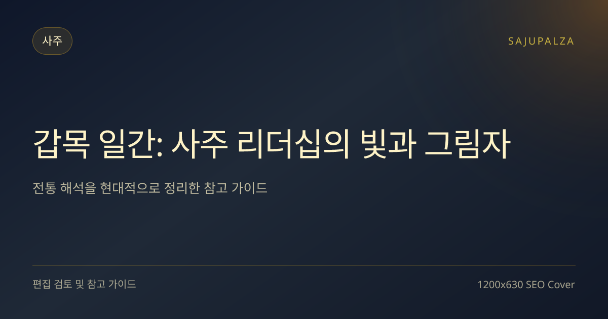 갑목 일간의 리더십은 실제로 존재합니다. 방향을 세우고, 판을 끌고 가고, 흔들리는 상황에서도 기준을 붙드는 힘입니다. 그런데 갑목 사주를 오래 보다 보면 반드시 나오는 이야기가 있습니다. '왜 이렇게 고집이 셀까?' 빛이 있으면 그림자도 있습니다. 갑목 사주의 리더십이 살아나는 조건과, 그게 오히려 부담이 되는 순간을 직업, 성격, 연애, 2026 병오년 흐름으로 나눠 정리합니다.